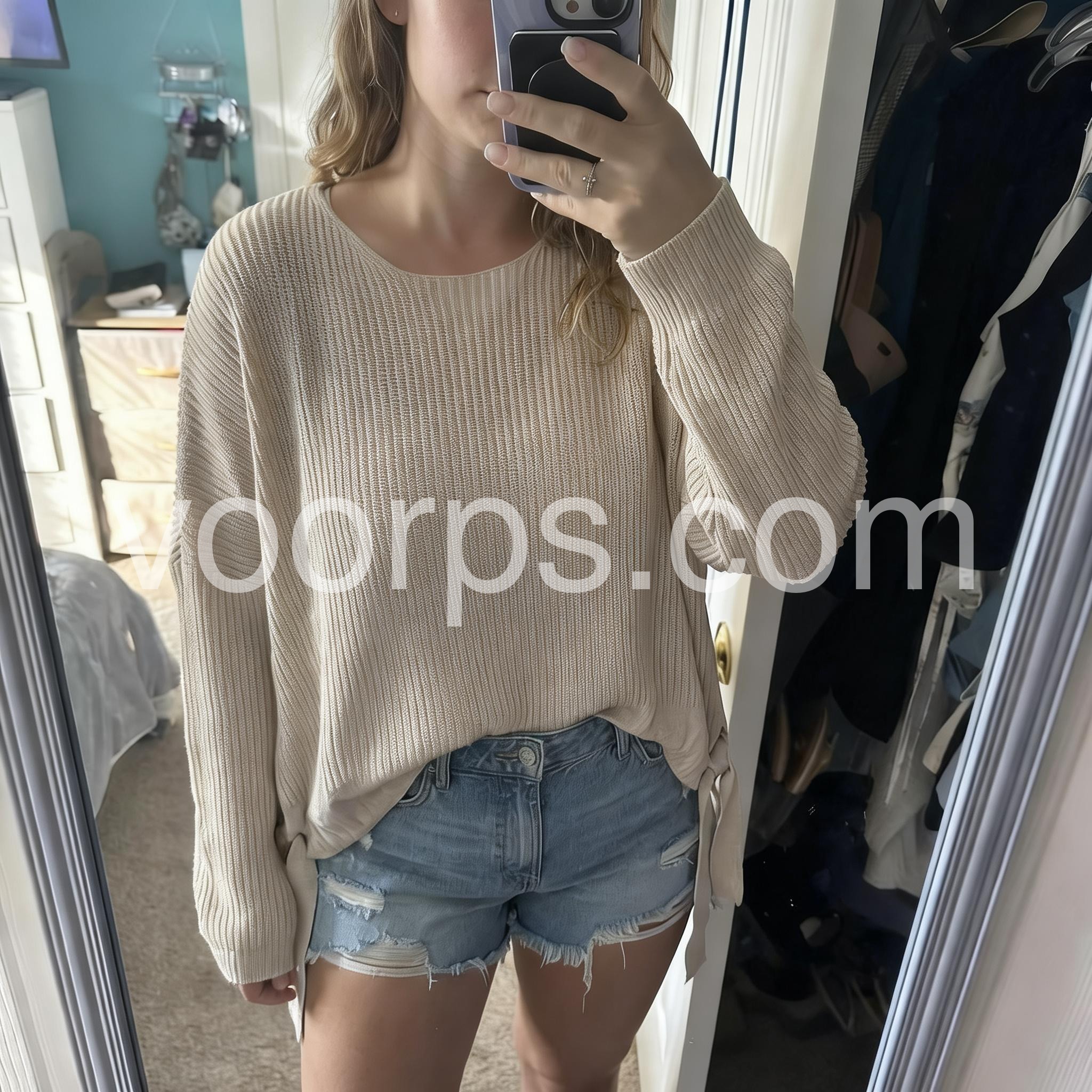 I’m really impressed by how comfortable this sweater is. It has a relaxed silhouette that doesn’t cling, and the knit fabric is soft to the touch. The styling is also very easy—I can wear it with jeans, skirts, or shorts. It’s become my go to for weekends and casual outings.