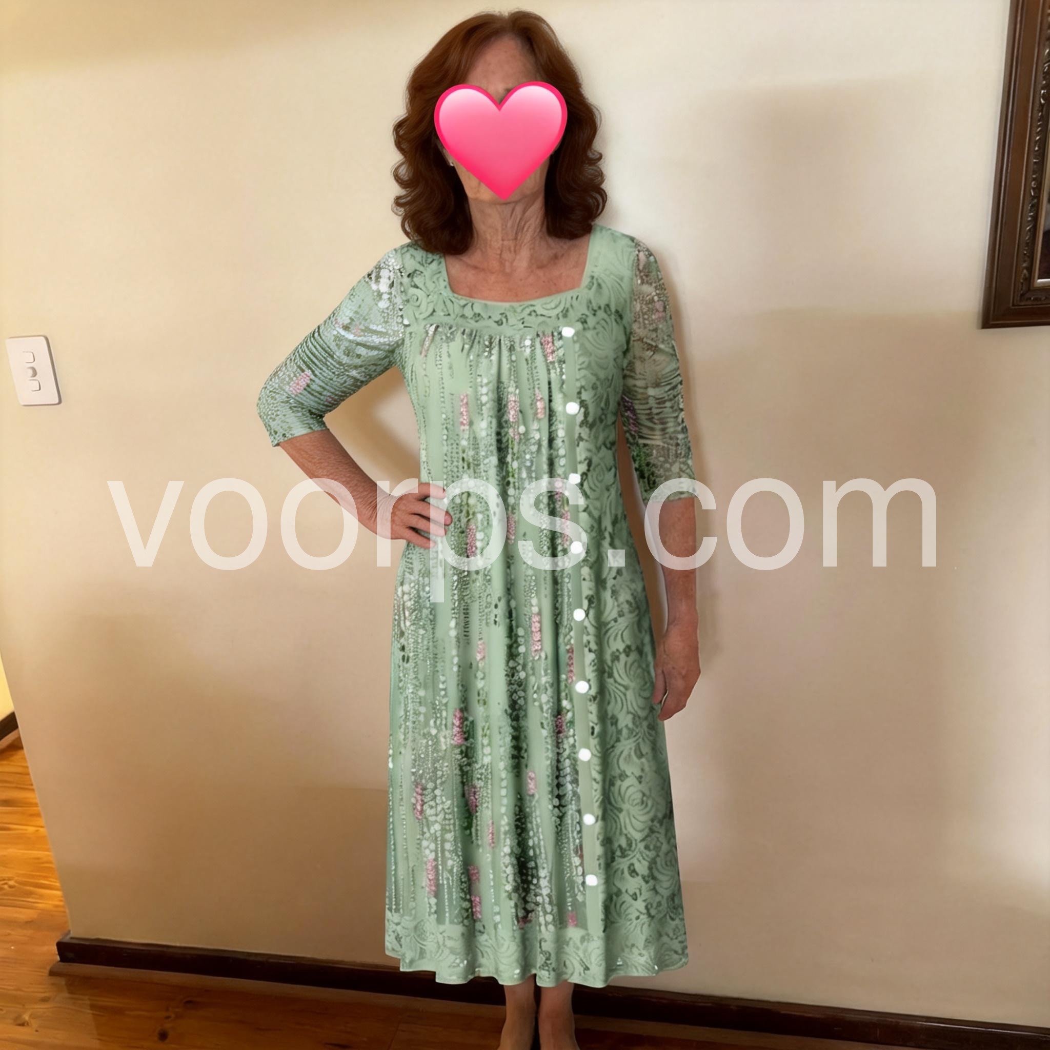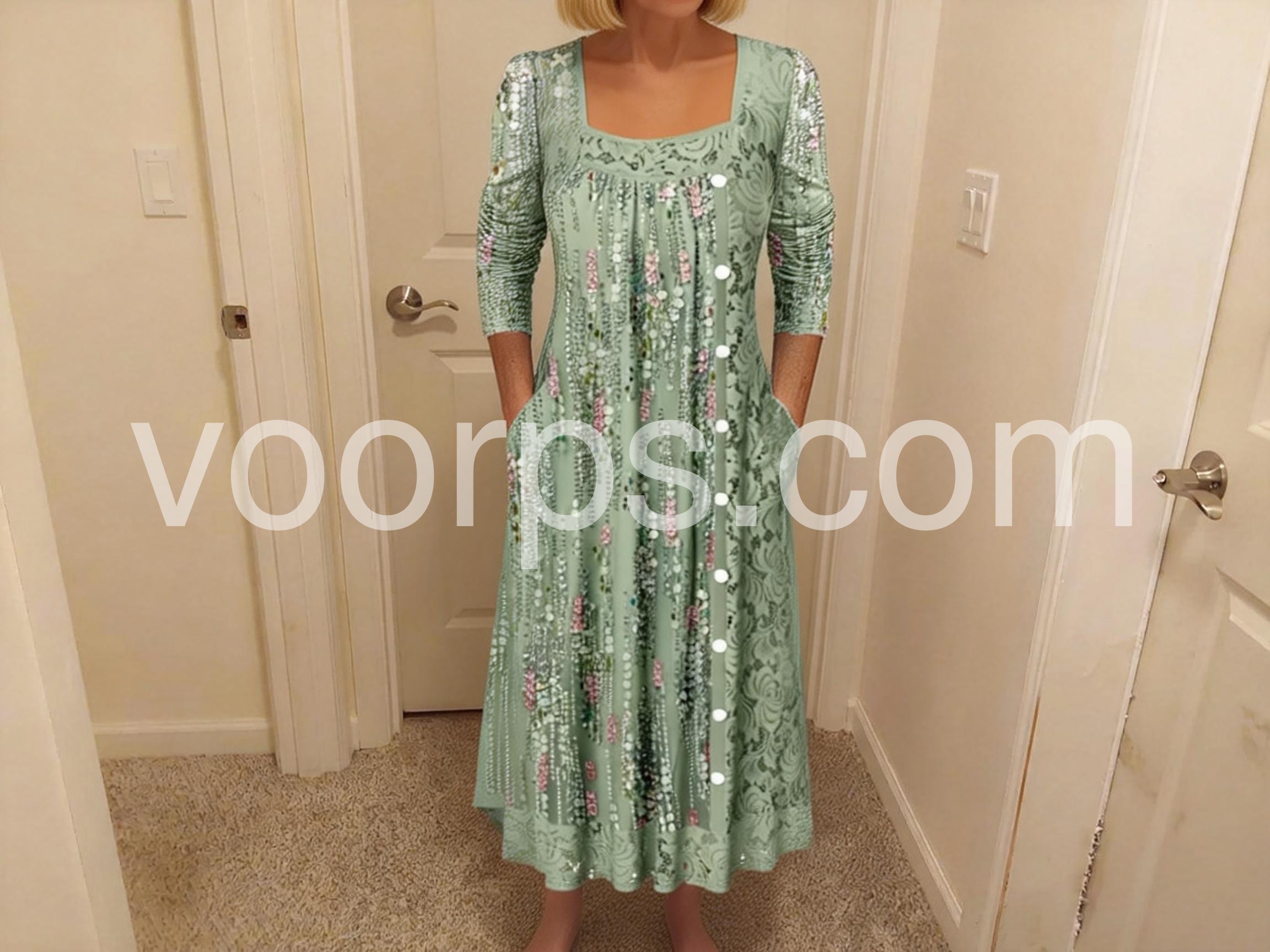 The floral lace pattern is just stunning in person. The buttons add a lovely touch of elegance. It falls beautifully past the knees and is very comfortable for all-day wear.