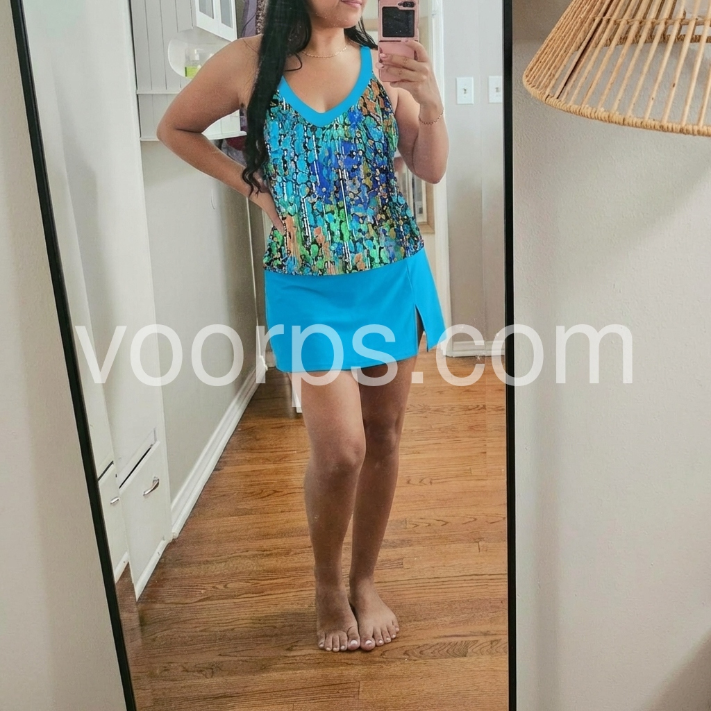 Very flattering to figure. Accentuates the waist and hides my upper thighs. If you're like me and a tad insecure about showing your booty or belly, this suit covers those areas and is super flattering on. I feel very comfortable and confident in this bathing suit.