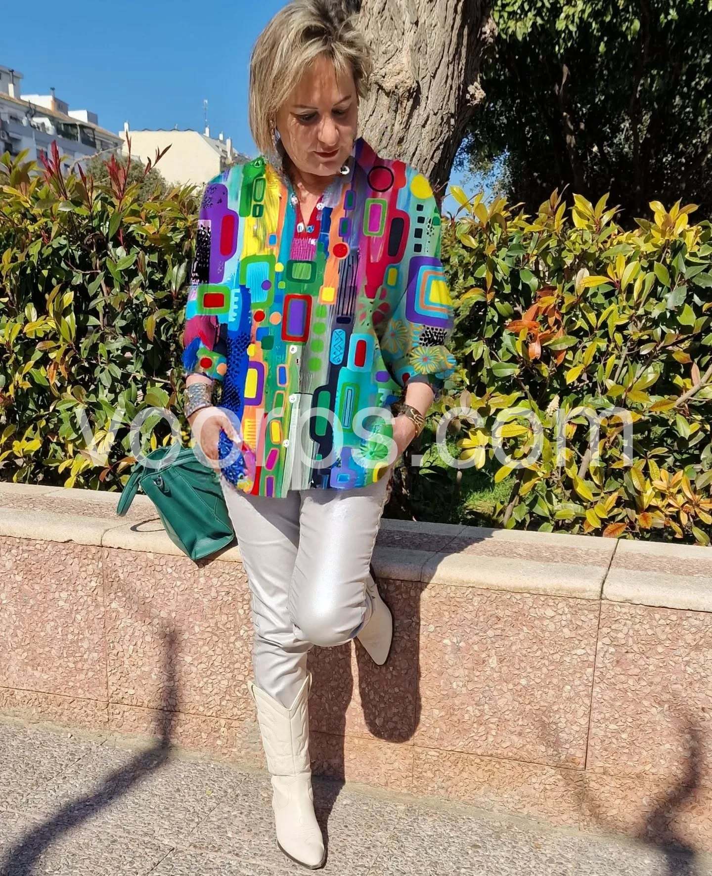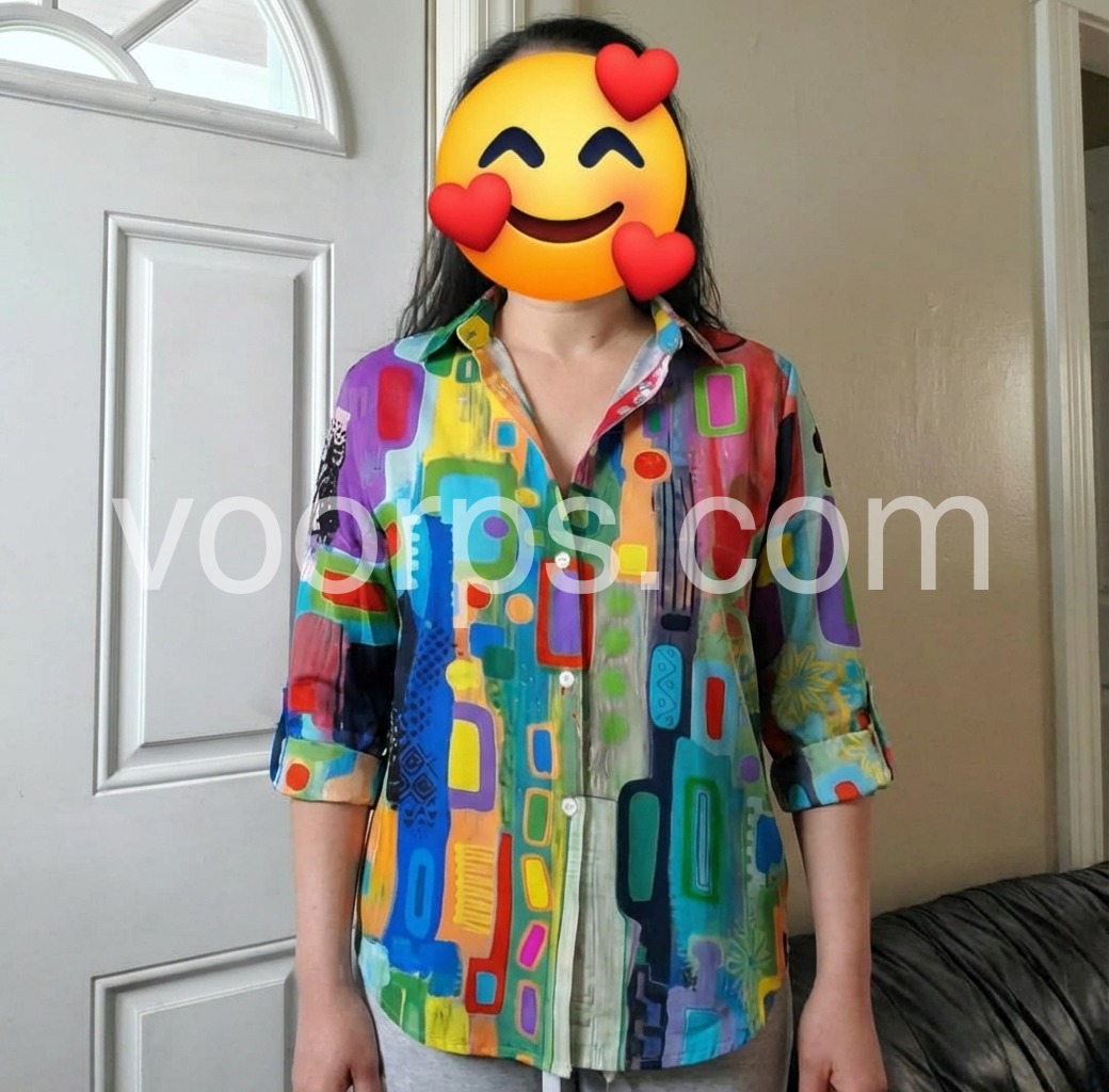 I love this top.I’m loving the colorful geometric design on this blouse. It’s the perfect way to add a stylish, modern touch to my wardrobe.