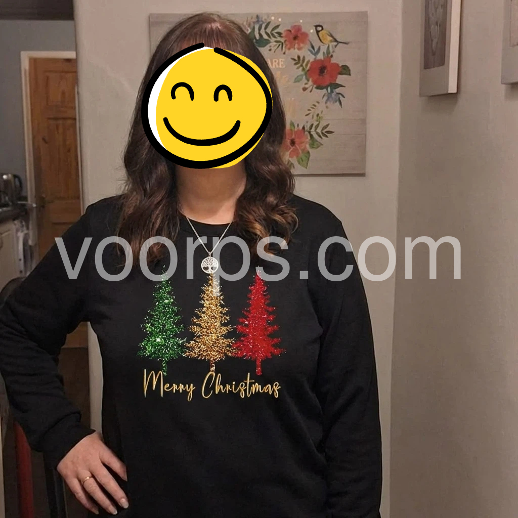 I wanted something cozy and cute for the holidays, and this sweatshirt nailed it. The black base makes the colorful tree lights stand out perfectly, and the design looks cheerful rather than dull. When I tried it on, it felt comfortable right away, and the sleeves are a great length for layering. I can’t wait to wear it during Christmas week.