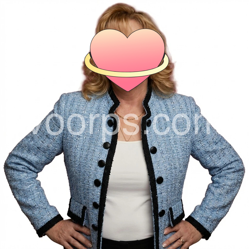 I absolutely love this jacket! The blue textured fabric looks high quality, and the black trim gives it such a classy, standout look. The button details are cute and the fit feels flattering and comfortable. It pairs perfectly with a simple top underneath, and it looks exactly like the photos. Overall, great quality and a really stylish find.