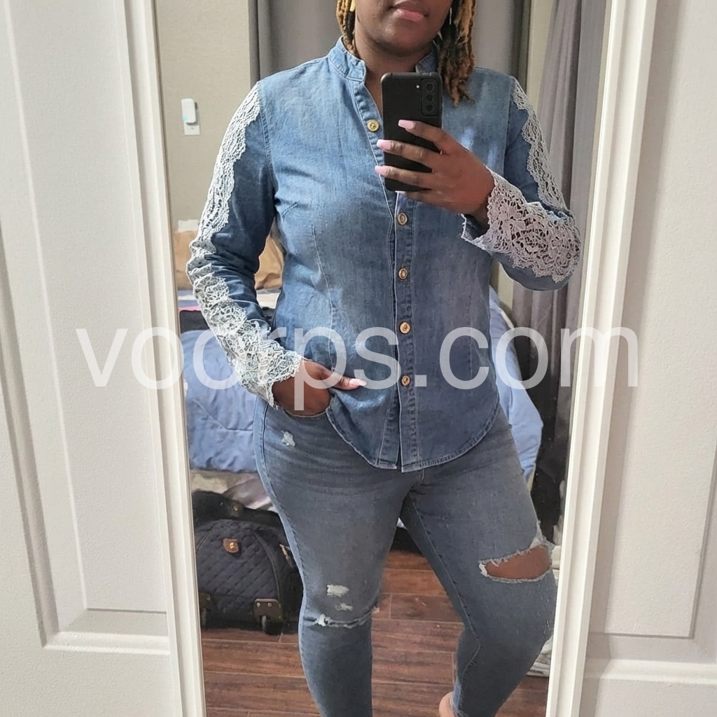 I was looking for a denim top that wasn't boring, and this one exceeded my expectations. The textured design is unique and goes with everything. It's lightweight but warm enough for a cool evening. The quality of the buttons and stitching is excellent for the price.