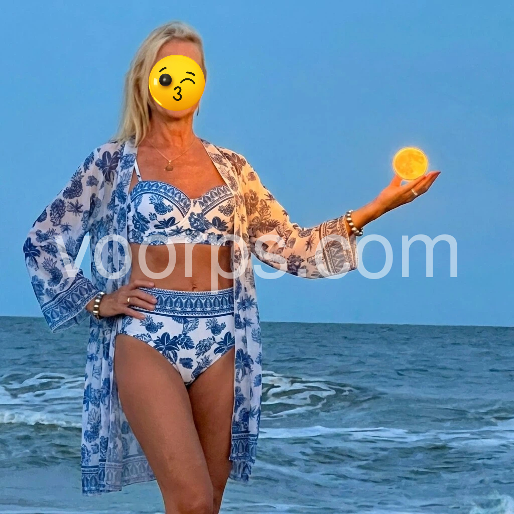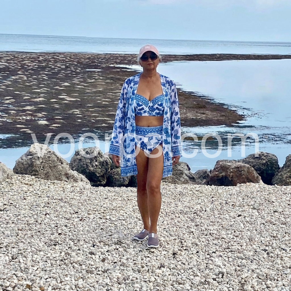 I absolutely love this swimsuit set! The blue-and-white pattern is so fresh, and the push-up style top gives a really flattering shape. The matching cover-up adds that perfect beach vibe soft, lightweight, and easy to wear over my bikini. Overall, it looks just like the photos and feels comfortable for a full day at the shore.