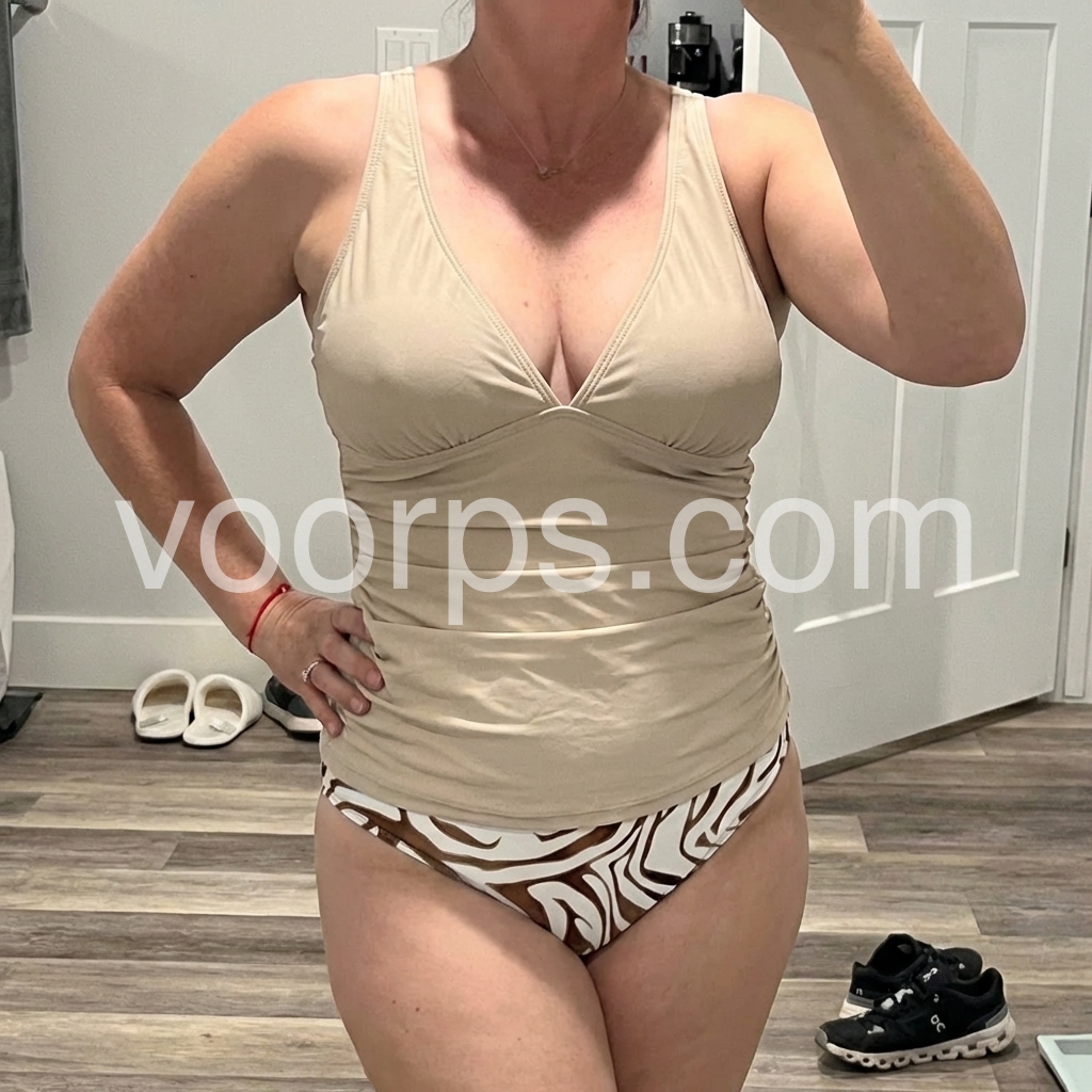 Love love love this swimsuit! It fits perfectly and is very comfortable! If you’re looking for a cute swimsuit but still modest and hides the mom pooch, this is the one!