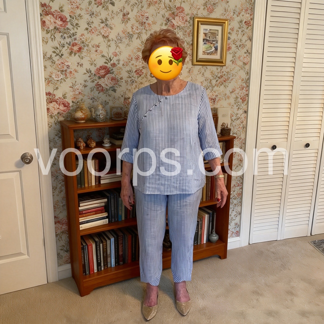 A wonderful outfit that is both modest and stylish. The sleeves cover my upper arms perfectly, and the cropped pants hit right at the ankle. Very classy and comfortable.