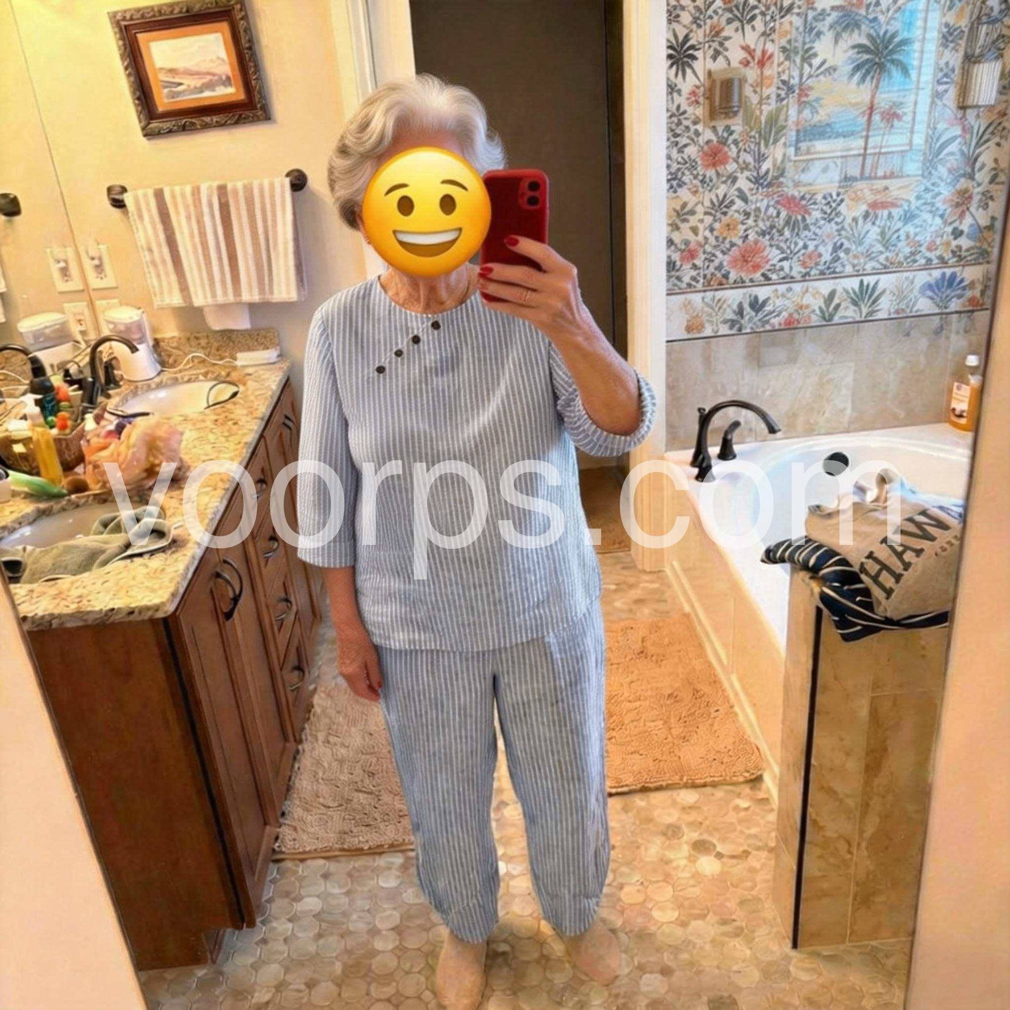 As a curvier woman, I appreciate how forgiving this set is. The top doesn't cling to my stomach, and the pants are roomy without looking baggy. Extremely happy with this purchase!
