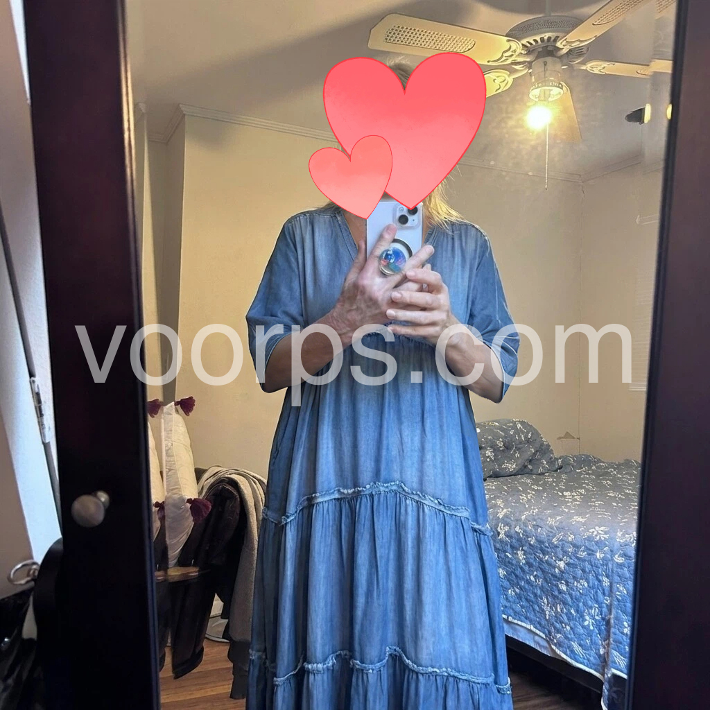 I absolutely love this dress! The denim color is beautiful and the tiered ruffle details give it such a flattering, feminine look. It’s so comfortable and the fit is perfect flowy without feeling sloppy. The long sleeves and the soft, washed-in look make it perfect for everyday wear. It matches the photos really well and looks even nicer in person.
